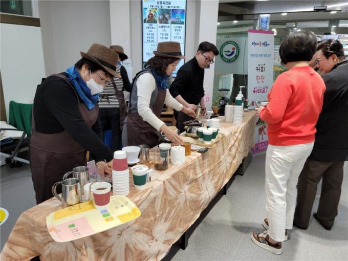 ÇÚµåµå¸³ Ä¿ÇÇ ½Ã¿¬Àº ÀåÈïÁ¾ÇÕ»çȸº¹Áö°ü°ú ¿¬°èÇÑ ¹Ù¸®½ºÅ¸ºÀ»ç´ÜÀÌ ÁøÇàÇß´Ù. ¹æ¹®°´µéÀº ¹Î¿ø ´ë±â½Ã°£¿¡ Ä¿ÇǸ¦ ¸¶½Ã¸ç ¿©À¯¸¦ Áñ±æ ¼ö ÀÖ¾ú´Ù¸ç ÁÁÀº ¹ÝÀÀÀ» º¸¿´´Ù.