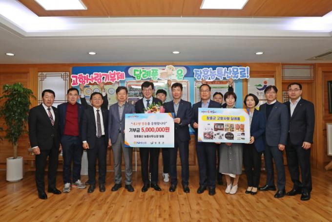 ±è¼®Âù NH³óÇù»ý¸í ºÎ»çÀå, Á¤¾ÈÁØ NH³²ÇØÈÇÐ ºÎ»çÀåÀ» ºñ·ÔÇÑ ÀÓ¿ø 8¸íÀÌ °íÇâ»ç¶û±âºÎ±Ý 500¸¸¿øÀ» ±âºÎÇÏ¸ç °íÇâ»ç¶û±âºÎÁ¦ È«º¸¿Í Ȱ¼ºÈ ÀÇÁö¸¦ ´ÙÁ³´Ù.