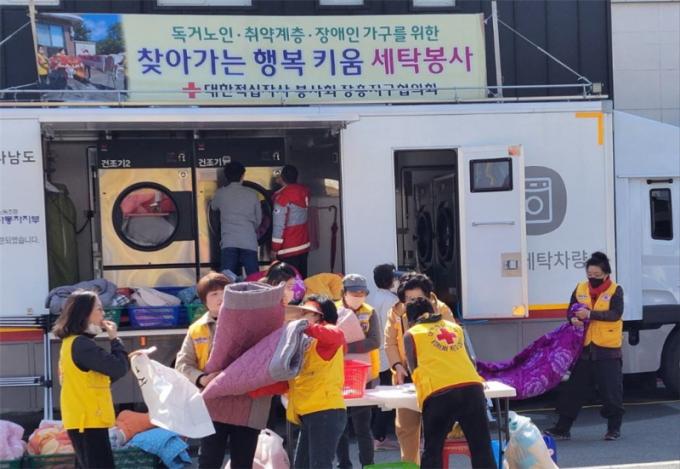 À̳¯ ºÀ»çȰµ¿Àº À̺ÒÀ» Á÷Á¢ ¼¼Å¹Çϱ⠾î·Á¿î µ¶°Å¾î¸£½ÅÀÇ Ã»°á°ú °Ç°À» À§ÇØ ¸¶·ÃµÆ´Ù. ºÀ»çÀÚµéÀº ÀÌºÒ »¡·¡¿¡ ¾î·Á¿òÀÌ ÀÖ´Â Ãë¾à°èÃþ100°¡±¸ÀÇ À̺ÒÀ» ¼ö°ÅÇØ ¼¼Å¹°ú °ÇÁ¶ °úÁ¤À» ¸¶Ä£ ÈÄ È¸¿øµéÀÇ ¼ÕÀ» °ÅÃÄ ´Ù½Ã Áý±îÁö ¹è´ÞÇß´Ù.