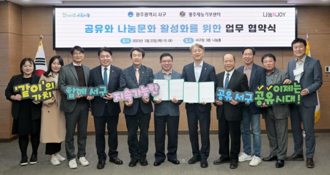 [È£³²´º½º¶óÀÎ = ¼ÀºÈ« ±âÀÚ] ±¤ÁÖ±¤¿ª½Ã ¼±¸(±¸Ã»Àå ±èÀ̰)°¡ ³ª´®°ú °øÀ¯, Çù¾÷À» ÅëÇØ ¼±µµÀûÀÎ °øÀ¯µµ½Ã·ÎÀÇ µµ¾àÀ» ¼±¾ðÇß´Ù. ¼±¸´Â 23ÀÏ ¼±¸Ã» 3Ãþ ³ª´®È¦¿¡¼ (»ç)±¤ÁÖÀç´É±âºÎ¼¾ÅÍ(´ëÇ¥ Àå¿ìö)¿Í °øÀ¯¹®È È®»êÀ» À§ÇÑ ¾÷¹«Çù¾àÀ» ü°áÇϰí, ¡®ÇÔ²² ¼±¸, Áö¼Ó°¡´ÉÇÑ °øÀ¯ ¼±¸¡¯ºñÀü ¼±Æ÷½ÄÀ» °³ÃÖÇß´Ù.