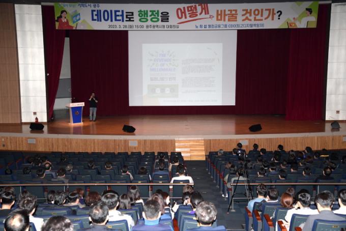 [È£³²´º½º¶óÀÎ = ¼ÀºÈ« ±âÀÚ] ±¤ÁÖ±¤¿ª½Ã(½ÃÀå °±âÁ¤)´Â 28ÀÏ ½Ãû ´ëȸÀǽǿ¡¼ ½Ã¿Í ÀÚÄ¡±¸ °ø¹«¿ø, ½Ã »êÇÏ °ø°ø±â°ü Á÷¿øÀ» ´ë»óÀ¸·Î ¡®µ¥ÀÌÅÍ·Î ÇàÁ¤À» ¾î¶»°Ô ¹Ù²Ü °ÍÀΰ¡¡¯¸¦ ÁÖÁ¦·Î ¡®³ëÈñ¼· À£ÄıÝÀ¶±×·ì CDO(ÃÖ°í µðÁöÅРåÀÓÀÚ) ÃÊû Ư°¡¯À» ¿¾ú´Ù.