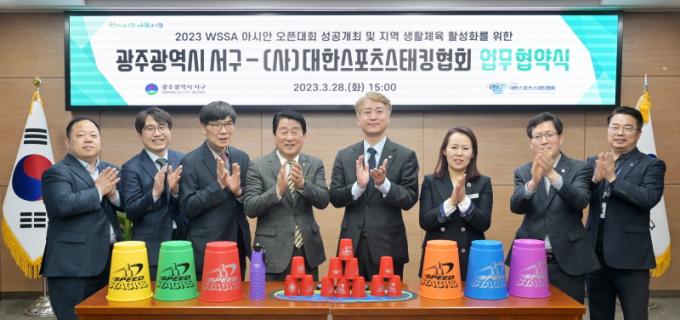 [È£³²´º½º¶óÀÎ = ¼ÀºÈ« ±âÀÚ] ±¤ÁÖ±¤¿ª½Ã ¼±¸(±¸Ã»Àå ±èÀ̰)´Â 28ÀÏ (»ç)´ëÇѽºÆ÷Ã÷½ºÅÂÅ·Çùȸ(ȸÀå À̹®¿ë)¿Í 2023 WSSA ¾Æ½Ã¾È ¿ÀÇ ½ºÆ÷Ã÷½ºÅÂÅ· èÇǾð½Ê ´ëȸÀÇ ¼º°ø°³ÃÖ ¹× Áö¿ª »ýȰüÀ° Ȱ¼ºÈ¸¦ À§ÇØ ¼ÕÀ» Àâ¾Ò´Ù.