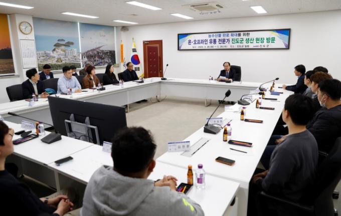 Áøµµ±ºÀÇ ´ëÇ¥ ³ó¼ö»ê¹°ÀÎ ½Ò, ´ëÆÄ, ¿ï±Ý, ±è, Àüº¹ µîÀÇ »ý»êÁö¿Í °¡°ø½Ã¼³ µîÀ» ¹æ¹®Çß´Ù.ƯÈ÷ Áøµµ±º ³ó¼ö»ê¹°ÀÇ »óǰ °³¹ß, À¯Åë ¹æÇâ °³¼± µîÀ» À§ÇØ À¯Åë °ü°èÀÚ¿Í ³ó‧¼ö»ê¹° »ý»êÀÚµéÀÌ Á÷Á¢ ¸¸³ª ´Ù¾çÇÑ ÀǰßÀ» ±³È¯Çß´Ù.