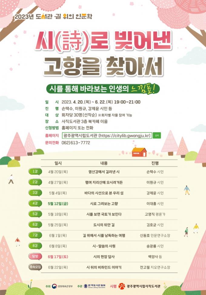 ¡®±æ À§ÀÇ Àι®ÇС¯Àº ½Ã¹ÎÀÌ °¿¬°ú ޹æ, µ¶¼¸¦ ÅëÇØ Àι®ÇÐÀ» ÇâÀ¯ÇÒ ¼ö ÀÖ°Ô Áö¿øÇÏ´Â ÇÁ·Î±×·¥ÀÌ´Ù. ¿ÃÇØ ÇÁ·Î±×·¥Àº ¡®½Ã(ãÌ)·Î ºú¾î³½ °íÇâÀ» ã¾Æ¼ : ½Ã¸¦ ÅëÇØ ¹Ù¶óº¸´Â ÀλýÀÇ ´À³¦Ç¥¡¯¸¦ ÁÖÁ¦·Î ¼ÕÅüö, ÀÌ¿ø±Ô, °Á¦À± ½ÃÀÎ µîÀÌ °¿¬ÀÚ·Î Âü¿©ÇÑ´Ù.