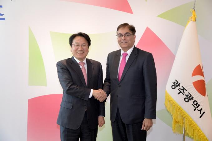 [È£³²´º½º¶óÀÎ = ¼ÀºÈ« ±âÀÚ] °±âÁ¤ ±¤ÁÖ±¤¿ª½ÃÀåÀº 31ÀÏ ½Ãû Á¢°ß½Ç¿¡¼ ¾Æ¹Ô Äí¸¶¸£(Amit Kumar) ½ÅÀÓ ÁÖÇÑ Àεµ ´ë»ç¿Í ¸¸³ª ÀΰøÁö´É(AI)°ú µ¥ÀÌÅ͸¦ Áß½ÉÀ¸·Î ÇÑ ¿ìÈ£Çù·Â ¹æ¾ÈÀ» ³íÀÇÇß´Ù.