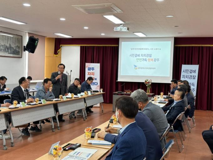 ±¤ÁÖÀÚÄ¡°æÂûÀ§¿øÈ¸´Â 4ÀÏ Æòµ¿ÇàÁ¤º¹Áö¼¾ÅÍ¿¡¼ ±¤»ê±¸ ÁÖ¹ÎÀÚÄ¡ÇùÀÇȸ¿Í °£´ãȸ¸¦ °®°í ÀÚÄ¡°æÂûÁ¦¸¦ ¼³¸íÇÏ°í ½Ã¹ÎÀǰßÀ» ¼ö·ÅÇß´Ù.
