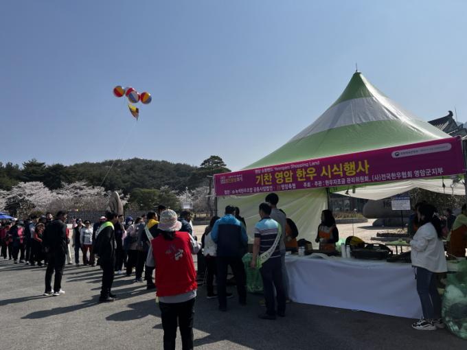 [È£³²´º½º¶óÀÎ = ¼ÀºÈ« ±âÀÚ] ¿µ¾Ï±º(±º¼ö ¿ì½ÂÈñ)Àº¡®2023¿µ¾Ï¿ÕÀι®ÈÃàÁ¦¡¯¸¦ ¸ÂÀÌÇÏ¿© Áö³´Þ 30ÀϺÎÅÍ 4Àϰ£ ÇÑ¿ì°í±â ½Ã½Äȸ¿Í ÇÒÀÎÆÇ¸Å¸¦ ½Ç½Ã, °ü±¤°´µéÀÇ Å« È£Æò ¼Ó¿¡ Çà»ç¸¦ ¸¶¹«¸®Çß´Ù°í ¹àÇû´Ù.