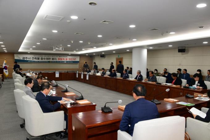 ±¤ÁÖ½ÃÀÇȸ´Â 4¿ù 5ÀÏ ¿ÀÈÄ 3½Ã, ½ÃÀÇȸ 4Ãþ ´ëȸÀǽǿ¡¼ ¹Ú¼ö±â ½ÃÀÇ¿øÀ» ÁÂÀåÀ¸·Î ¡®°ÇÃ๰ Ãþ¼öÁ¦ÇÑ ÆóÁö, ¾î¶»°Ô º¼ °ÍÀΰ¡¡¯¸¦ ÁÖÁ¦·Î °¢°è Àü¹®°¡¿Í ½Ã¹ÎµéÀÇ ÀǰßÀ» ¼ö·ÅÇÏ´Â Á¤Ã¥Åä·Ðȸ¸¦ ¿¾ú´Ù.