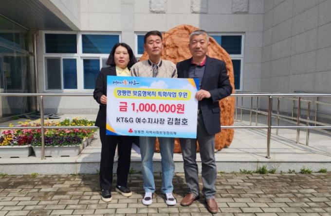 [È£³²´º½º¶óÀÎ = ¼ÀºÈ« ±âÀÚ] ÀåÈﱺ ÀåÆò¸é Áö¿ª»çȸº¸ÀåÇùÀÇü(À§¿øÀå ÀÌÀÎÈì, ¿À¿µº¹)´Â 7ÀÏ ±èöȣ KT&G¿©¼öÁöÁ¡ÀåÀÌ ÀÌ¿ôµ½±â ¼º±Ý 100¸¸¿øÀ» ±âŹÇß´Ù°í ¹àÇû´Ù.