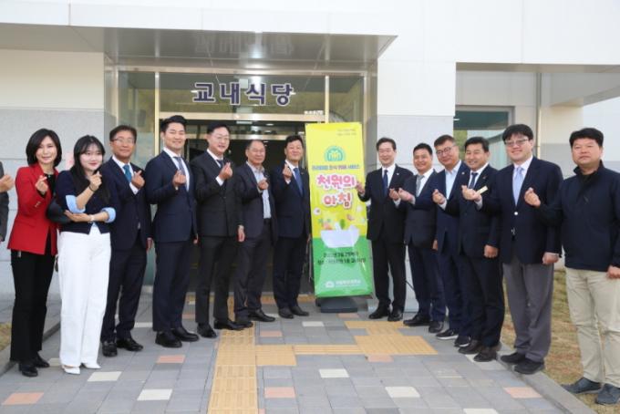 À̳¯ Àü³²µµÀÇȸ ³ª±¤±¹‧À̱ÔÇö‧ÁÖÁ¾¼·‧ÃÖÁ¤ÈÆ‧ÃÖµ¿ÀÍ ÀÇ¿ø°ú ¸ñÆ÷´ëÇб³ ¼ÛÇÏö ÃÑÀå, ´ëÇб³ °ü°èÀÚ, Çлý µîÀÌ ÇÔ²²Çß´Ù. ¡®Ãµ¿øÀÇ ¾ÆÄ§¹ä¡¯Àº ³ó¸²Ãà»ê½ÄǰºÎ¿Í ´ëÇÐÀÇ º¸Á¶·Î Çлýµé¿¡°Ô 1,000¿ø¿¡ Á¶½ÄÀ» Á¦°øÇÏ´Â »ç¾÷ÀÌ´Ù.