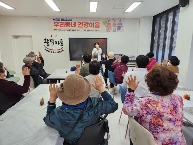 [È£³²´º½º¶óÀÎ = ¼ÀºÈ« ±âÀÚ] ±¤ÁÖ±¤¿ª½Ã µ¿±¸(ûÀå ÀÓÅÃ)´Â ÀΰøÁö´É(AI)¡¤»ç¹°ÀÎÅͳÝ(IoT) ±â¹ÝÀ¸·Î ÇÏ´Â ¾î¸£½Å °Ç°°ü¸®»ç¾÷ Âü¿©ÀÚ Áß µ¶°Å ¾î¸£½Å ´ë»ó °Ç° ¼Ò¸ðÀÓ ¡®¿ì¸®µ¿³× °Ç°ÀÌÀ½¡¯ ÇÁ·Î±×·¥À» ¿î¿µÇÑ´Ù°í ¹àÇû´Ù.