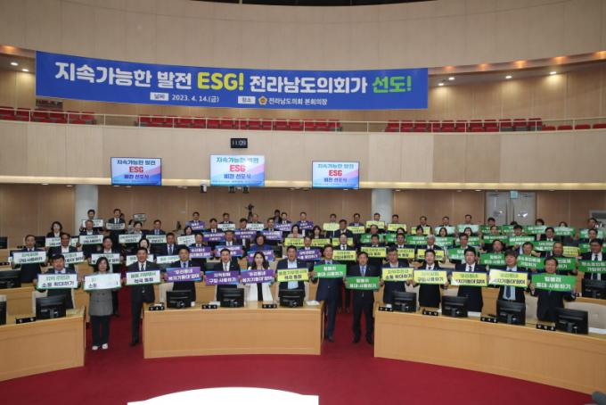 [È£³²´º½º¶óÀÎ = ¼ÀºÈ« ±âÀÚ] Àü¶ó³²µµÀÇȸ(¼µ¿¿í ÀÇÀå)´Â 14ÀÏ µµÀÇȸ º»È¸ÀÇÀå¿¡¼ ¡®Áö¼Ó°¡´ÉÇÑ ¹ßÀü ESG! Àü¶ó³²µµÀÇȸ°¡ ¼±µµ¡¯¶ó´Â ÁÖÁ¦·Î ESG(ģȯ°æ °æ¿µ¡¤»çȸÀû Ã¥ÀÓ¡¤Åõ¸íÇÑ Áö¹è±¸Á¶) ºñÀü ¼±Æ÷½ÄÀ» °³ÃÖÇß´Ù.