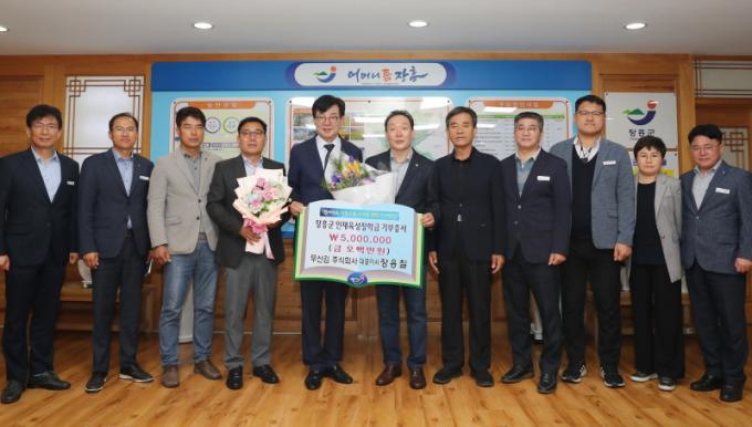 Àå¿ëÄ¥ ´ëÇ¥ÀÌ»ç´Â ¡°15³âµ¿¾È ȸ»ç¸¦ °æ¿µÇÏ¸é¼ ±º°ú Áö¿ª¿¡¼ ´Ù¾çÇÑ µµ¿òÀ» ¹ÞÀº Á¡ÀÌ ÀÖ¾î À̸¦ Áö¿ª¿¡ ȯ¿øÇÏ´Â ¹æ¹ýÀ» ±¸»óÇÏ´ø Áß ÀÎÀçÀ°¼ºÀåÇбÝÀ» ±âŹÇÏ°Ô µÆ´Ù¡±¸ç ¡°¾ÕÀ¸·Îµµ Áö¿ª¿¡ µµ¿òÀÌ µÉ ¼ö ÀÖ´Â »ç¾ÈÀÌ ÀÖ´Ù¸é Áö¼ÓÀûÀ¸·Î ÈûÀ» º¸Å°ڴ١±°í ¸»Çß´Ù.