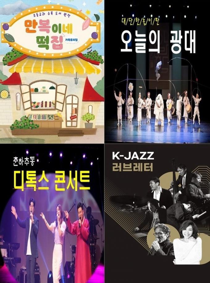 ÇϹݱ⠰ø¿¬Àº ¿ì¸®ÀÇ ¼Ò¸®¿Í ÀüÅë ±â¿¹¸¦ ¸¸³ª º¼ ¼ö ÀÖ´Â ÀüÅ뿹¼ú¡ã´ë´ÜÇÑ ³îÀÌÆÇ <¿À´ÃÀÇ ±¤´ë>(7¿ù 13ÀÏ), ±¹¾Ç°ú Æ®·ÔÀ» ÇÑÀÚ¸®¿¡¼ Áñ±æ ¼ö ÀÖ´Â ¡ãÃáÇÏÃßµ¿ <µðÅ彺 ÄܼƮ>(8¿ù 10ÀÏ), û¼Ò³âµé¿¡°Ô À§·Î¿Í Èñ¸ÁÀ» °Ç³×ÁÙ ¹ÂÁöÄáã<µð½ºÀÌÁîÀÕ(This is it)>(8¿ù 29ÀÏ), ¼·Î ´Ù¸¥ ¾î¸°À̵éÀÌ °³¼ºÀ» ÀÎÁ¤Çϸç ÈÇÕÀ» ÀÌ·ç´Â ¹ÂÁöÄáãij¸®¿Í Ä£±¸µé<ºü¶ó¹ã À¯Ä¡¿ø>(8¿ù 31ÀÏ), °¡¼ö ÁÖÇö¹Ì°¡ ÁøÇàÇϸç ÀçÁ °¨»óÇÒ ¼ö Àִ¡ãK-JAZZ<·¯ºê·¹ÅÍ> with ÁÖÇö¹Ì, À̰æ¿ì, ÇÊÀ±¹êµå(9¿ù 14ÀÏ)¸¦ °ø¿¬ÇÒ °èȹÀÌ´Ù.