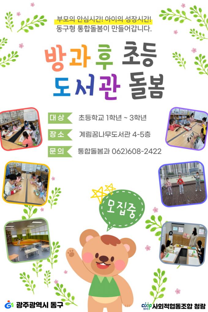 ÀÌ¿ë ´ë»óÀº µ¿±¸¿¡ Áֹεî·ÏÀ» µÐ ÃʵîÇб³ ÀúÇгâ(1~3Çгâ) ¾Æµ¿À¸·Î ÆòÀÏ ¿ÀÈÄ 1~7½Ã±îÁö ´Ù¾çÇÑ µ¹º½¼ºñ½º¸¦ ÀÌ¿ëÇÒ ¼ö ÀÖ´Ù. ¼ºñ½º ÀÌ¿ë ºÎ´ãÀº ¿ù 2¸¸ ¿øÀ̸ç, Àü¹® µ¹º½Àü´ã»ç 2¸í°ú º¸Á¶ ÀηÂÀÌ ¹èÄ¡µÅ ¾Æµ¿ÀÇ ¾ÈÀü°ú µ¹º½À» Ã¥ÀÓÁø´Ù.