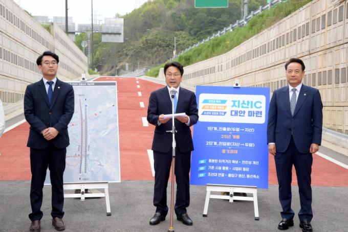 ¸ÕÀú, 1´Ü°è »ç¾÷À¸·Î Áö»êIC ÇÏÇà ÁøÃâ·Î¸¦ ¿ìÃøÀ¸·Î °³¼³ÇØ Á¶¼±´ë »ç¹ü´ë ÁøÀÔµµ·Î¿¡ ¿¬°áÇÑ´Ù. ¹Ý´ë ¹æÇâÀ» ÁÖÇàÇÏ´Â »óÇà Â÷·®Àº ¾à 1.4§° ¶³¾îÁø µÎ¾ÏIC¿¡¼ À¯ÅÏÇØ ÇÏÇà ÁøÃâ·Î¸¦ ÀÌ¿ëÇÏ°Ô µÈ´Ù.