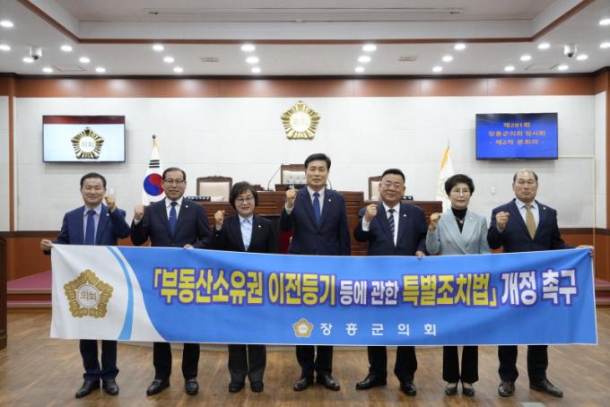 [È£³²´º½º¶óÀÎ = ¼ÀºÈ« ±âÀÚ] ÀåÈﱺÀÇȸ(ÀÇÀå ¿ÕÀ±Ã¤)´Â Á¦281ȸ ÀÓ½Ãȸ Á¦2Â÷ º»È¸ÀÇ¿¡¼ ¡®ºÎµ¿»ê¼ÒÀ¯±Ç ÀÌÀüµî±â µî¿¡ °üÇÑ Æ¯º°Á¶Ä¡¹ý¡¯°³Á¤ ÀÔ¹ýÀ» Ã˱¸ÇÏ´Â °ÇÀǾÈÀ» 7¸í ÀÇ¿ø ¸¸ÀåÀÏÄ¡·Î äÅÃÇß´Ù.