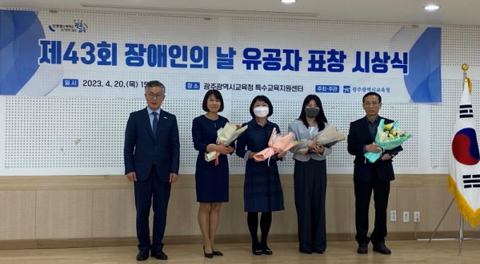 ±¤Áֽñ³À°Ã», ¡®Á¦43ȸ Àå¾ÖÀÎÀÇ ³¯¡¯ À¯°øÀÚ Ç¥Ã¢ ¼ö¿©½Ä °³ÃÖ(»çÁø ¿ÞÂʺÎÅÍ ±èÁ¾±Ù ±³À°±¹Àå, ¼±¿ìÇб³ °Èij² ±³»ç, ÀºÇýÇб³ À̼º½Å ±³»ç, ¿ùºÀÁß ¿À¼Ò¿µ ±³»ç, dz¾Ï°í Ȳ½ÂÁÖ »ç¹«°ü)