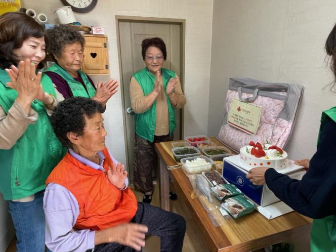 ÀÌ »ç¾÷Àº ¿ÃÇØ »ýÀÏÀ» ¸ÂÀº ¸¸ 85¼¼ ÀÌ»óÀÇ Àú¼Òµæ µ¶°Å³ëÀÎÀ» ´ë»óÀ¸·Î ¿ù 1ȸ ÀåÈïÀ¾»õ¸¶À»ºÎ³àȸ(ȸÀå ¼Û¾ÖÀÚ), ÆÄ¸®¹Ù°ÔÆ®(´ëÇ¥ ±è¼±¿ì)¿Í ´ÔÇÁ¸¸(´ëÇ¥ ±èÁ¾±Ù), ·Ôµ¥Ä¥¼ºÀåÈï´ë¸®Á¡(´ëÇ¥ ±èÀçÁø)¿¡¼ ÈÄ¿øÇÑ »ý½ÅÀ½½Ä, ÄÉÀÌÅ©, À̺Ò, À½·á µîÀ» ÇÔ²² Àü´ÞÇÑ´Ù.