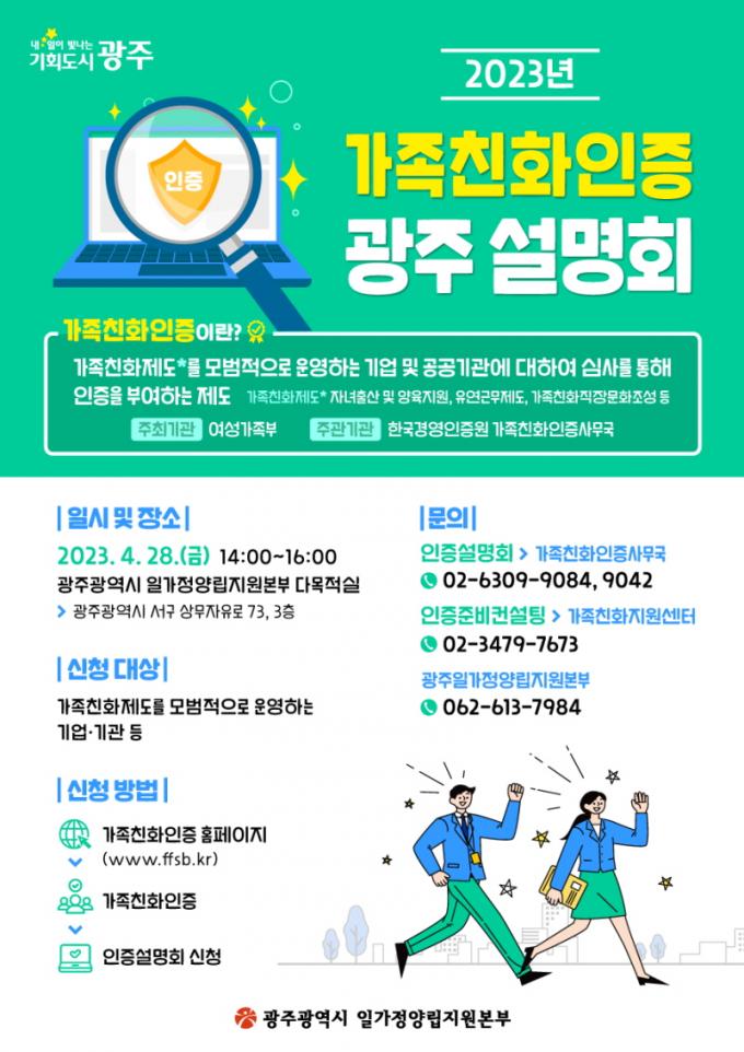 °¡Á·Ä£ÈÀÎÁõ ¼³¸íȸ´Â À¯¿¬±Ù¹«Á¦, Á¤½ÃÅð±Ù, À°¾ÆÈÞÁ÷ µî °¡Á·Ä£ÈÁ¦µµ¸¦ ¸ð¹üÀûÀ¸·Î ¿î¿µÇÏ´Â ±â¾÷¡¤±â°üÀ» ´ë»óÀ¸·Î ¿©¼º°¡Á·ºÎ°¡ ºÎ¿©ÇÏ´Â ¡®°¡Á·Ä£ÈÀÎÁõÁ¦µµ¡¯ÀÇ ½É»ç±âÁØ µî ¼¼ºÎÇ׸ñ¿¡ ´ëÇÑ Á¤º¸¸¦ Á¦°øÇÑ´Ù.