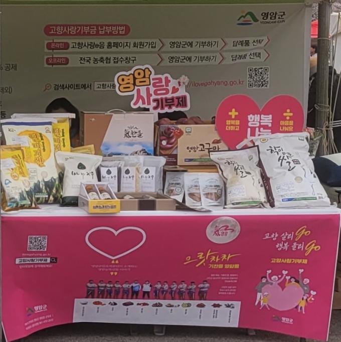 ÇöÀç ¿µ¾Ï±ºÀº µÎ Â÷·ÊÀÇ °íÇâ»ç¶û±âºÎ±Ý ´ä·Êǰ ¼±Á¤À§¿øÈ¸¸¦ ÅëÇØ ¼±Á¤ÇÑ ÃÑ 67Á¾ÀÇ ´ä·ÊǰÀ» °íÇâ»ç¶û±âºÎÀÚ¿¡°Ô Á¦°øÇϰí ÀÖÀ¸¸ç, ÁÖ¿ä ´ä·ÊǰÀº Çѿ졤½Ò¡¤°í±¸¸¶¡¤´ëºÀ°¨¡¤¹è¡¤¹«È°ú¡¤¸á·Ð¡¤»þÀθӽºÄ¹¡¤Àå¾î¡¤Àâ°î·ù¡¤¿Á¼ö¼ö¡¤Å丶Åä ¹× ¹æ¿ïÅ丶Å䡤³óƯ»ê¹° ²Ù·¯¹Ì¡¤±èÄ¡¡¤µÅÁö°í±â¡¤Â÷(Òþ)¡¤¹ßÈ¿½ÄÃÊ¡¤ÁÖ·ù¡¤Àå·ù¡¤±â¸§·ù¡¤Ç¥°í¹ö¼¸°ú ¸ðµç ³óÃà¼ö»ê¹°À» ¿øÀç·á·Î ÇÏ´Â °¡°øÇ°°ú °ø¿¹Ç°, ¼÷¹Ú ÀÌ¿ë±Ç, °ü±¤ ¼ºñ½º üÇè±Ç µîÀÌ´Ù.
