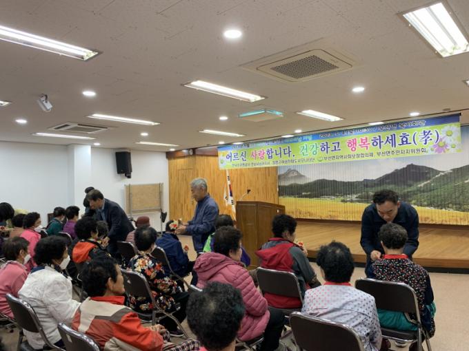 ¹æÁö¿µ ºÎ»ê¸éÀåÀº ¡°¾î¹öÀ̳¯À» ¸Â¾Æ Áö¿ª ±â°ü¡¤»çȸ ´Üü°¡ Çù·ÂÇÏ¿© ¾î¸£½Åµé¿¡°Ô °¨»ç¿Í ÃàÇÏÀÇ ¸¶À½À» Àü´ÞÇϰíÀÚ Çà»ç¸¦ °³ÃÖÇÏ°Ô µÇ¾ú´Ù.¡±¸ç, ¡°¾ÕÀ¸·Îµµ ¾î¸£½ÅµéÀÌ ÇູÇÑ ³ëÈĸ¦ º¸³¾ ¼ö ÀÖµµ·Ï °Ç°°ú º¹Áö µî¿¡ ¼ÒȦÇÔ ¾øÀÌ Ã¬°Ü ³ª°¡°Ú´Ù¡±°í ¸»Çß´Ù.