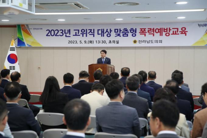 [È£³²´º½º¶óÀÎ = ¼ÀºÈ« ±âÀÚ] Àü¶ó³²µµÀÇȸ(ÀÇÀå ¼µ¿¿í)´Â 9ÀÏ ÀÇȸ ÃÊÀǽǿ¡¼ 61¸íÀÇ µµÀÇ¿ø ¹× ÀÇȸ»ç¹«Ã³ °£ºÎ°ø¹«¿øÀ» ´ë»óÀ¸·Î °íÀ§Á÷ ¸ÂÃãÇü Æø·Â¿¹¹æ±³À°À» ½Ç½ÃÇß´Ù.