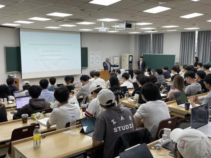 À̳¯ Ư°Àº ÀÓµ¿ÈÆ Á¶¼±´ëº´¿ø ºÎ¿øÀåÀÌ ¹Ì±¹ ¿¬¼ö ½ÃÀý ¸ÎÀº Àο¬À» °è±â·Î ¸¶·ÃµÆÀ¸¸ç ¼Ò¸¸ ´Ï³ ¾Æºê¶óÇÔ ±³¼ö´Â Àǰú´ëÇÐ ÀÇ¿¹°ú 2Çгâ ÇлýµéÀ» ´ë»óÀ¸·Î ¡®¿ä·Î°¨¿° ¸é¿ªÇС¯(Immunology of Urinary Tract Infections)¿¡ ´ëÇØ À̾߱âÇß´Ù.