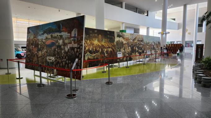 ÀÛǰÀº °¡·Î 5.2m, ¼¼·Î 2.6mÀÇ ´ëÇü ¿ª»ç±â·ÏÈ 7Á¡À¸·Î ±¸¼ºµÅ ÀÖ´Ù. ½Ã°£ÀÇ È帧¿¡ µû¶ó ¡ã1È ÆøÇ³Àü¾ß ¡ã2È È¶ºÒ·Î Á¶±¹ÀÇ ¹Ì·¡¸¦ ¹àÈ÷´Ù ¡ã3È °è¾ö·É ¡ã4È ¹ÎÁÖ¼ºÈ¸ ¡ã5È ´ëµ¿¼¼»ó ¡ã6È ½½ÇÂÀüÀï ¡ã7È ÇÇ·Î ¹°µç »õº®Àº ¹à¾Æ¿À°í ¼øÀ¸·Î °ü¶÷ÇÏ¸é µÈ´Ù.