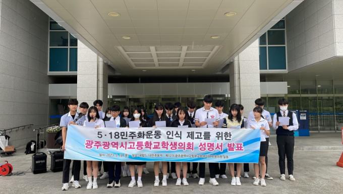 [È£³²´º½º¶óÀÎ = ¼ÀºÈ« ±âÀÚ] ±¤ÁÖ±¤¿ª½Ã°íµîÇб³ÇлýÀÇȸ(ÀÌÇÏ °íµîÀÇȸ)°¡ Á¦43ÁÖ³â 5‧18¹ÎÁÖȿÀ» ¸ÂÀÌÇØ ±¤ÁÖÇлýµ¶¸³¿îµ¿±â³äȸ°ü ÀÔ±¸¿¡¼ ¡®5‧18¹ÎÁÖȿ¿¡ ´ëÇÑ ÀÎ½Ä Á¦°í¸¦ Ã˱¸ÇÏ´Â ¼º¸í¼¡¯¸¦ ¹ßÇ¥Çß´Ù.
