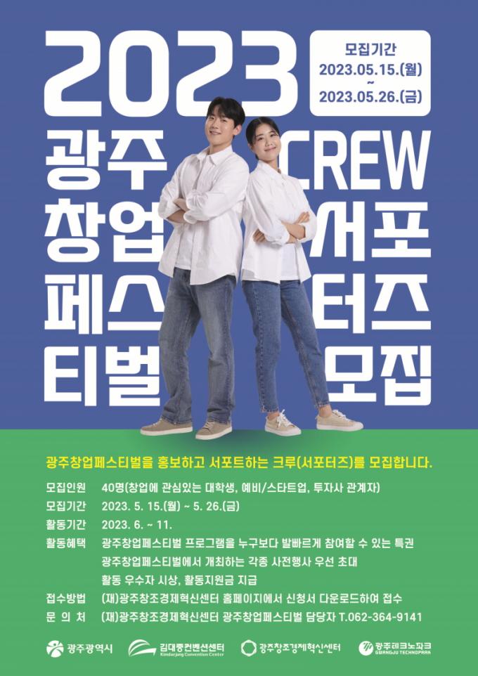 ¾Æ¿ï·¯ 2023 ±¤ÁÖâ¾÷Æä½ºÆ¼¹ú È«º¸´Ü(Å©·ç)Àº â¾÷¿¡ °ü½É ÀÖ´Â ´ëÇлýºÎÅÍ Ã¢¾÷±â¾÷, ÅõÀÚ»ç µî ´©±¸³ª Áö¿øÀÌ °¡´ÉÇÏ¸ç °³ÀÎ »Ó ¾Æ´Ï¶ó ´Üü·Îµµ ½ÅûÀÌ °¡´ÉÇÏ´Ù. È«º¸´Ü(Å©·ç)Àº »çȸ°ü°è¸Á¼ºñ½º(SNS)¿¡ ÀÚÀ¯·Î¿î ¹æ½ÄÀ¸·Î ±¤ÁÖâ¾÷Æä½ºÆ¼¹ú È«º¸ Ȱµ¿À» ÇÏ°Ô µÈ´Ù.