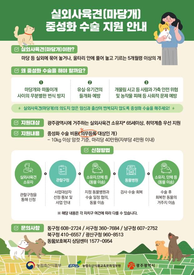¡®½Ç¿Ü»çÀ°°ß¡¯Àº ¸¶´ç µî ½Ç¿Ü¿¡ ¹¾î ³õ°Å³ª, ¿ïŸ¸® ¾È¿¡ Ç®¾î ³õ°í ±â¸£´Â 5°³¿ù·É ÀÌ»óÀÇ Áøµµ°ß À¯»ç ǰÁ¾ ¹× ¹Í½º°ßÀ» ÁöĪÇÑ´Ù. Áö¿ø´ë»óÀº ±¤ÁÖ±¤¿ª½Ã¿¡ ÁÖ¼ÒÁö¸¦ µÎ°í ½Ç°ÅÁÖÇϰí ÀÖ´Â ½Ç¿Ü»çÀ°°ß ¼ÒÀ¯ÀÚ·Î, ÇØ´ç ÀÚÄ¡±¸¿¡ ½ÅûÇÏ¸é µÈ´Ù. ÃÖÁ¾ ¼±Á¤µÇ¸é ÁöÁ¤µÈ µ¿¹°º´¿øÀ¸·Î ¾È³»ÇÑ´Ù.