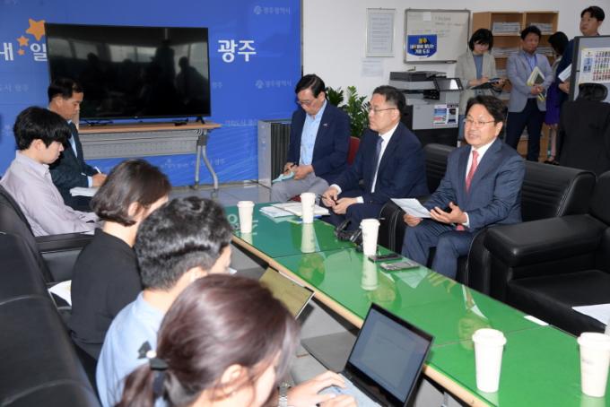 ° ½ÃÀåÀº ¶Ç ¡°80³â ÀÌÈÄ ÅÂ¾î³ ±¤ÁÖÀÇ ÀþÀº ½ÃÀÇ¿øµéÀÌ ¡®5‧18Àº ´©±¸ÀÇ °ÍÀΰ¡¡¯¶ó´Â ³¯¼± Áú¹®À» ´øÁ³´Ù¡±¸é¼ ¡°±× Áú¹®Àº 5‧18À» °æÇèÇÑ ¼¼´ë, 5‧18ÀÇ ÁÖÀÎÀÓÀ» ÀÚóÇÑ À̵é, 5‧18 ¾÷¹«¸¦ ´ã´çÇÏ´Â ÇàÁ¤À» ÇâÇϰí ÀÖ´Ù. 5‧18¼¼´ëÀÎ Àúµµ, ±¤Áֽõµ ¼ºÂûÇϰí ÀÀ´äÇϰڴ١±°í ÀÚ¼ºÇß´Ù.