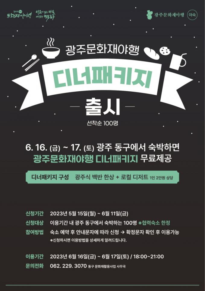[È£³²´º½º¶óÀÎ = ¼ÀºÈ« ±âÀÚ] ±¤ÁÖ µ¿±¸(ûÀå ÀÓÅÃ)´Â 6¿ù ¹ã°Å¸®¸¦ ¼ö³õÀ» ¡®±¤ÁÖ¹®ÈÀç¾ßÇ࡯ °³ÃÖ ±â°£ µ¿¾È(16~17ÀÏ) °ü³»¿¡¼ ¼÷¹ÚÇÏ´Â °ü±¤°´À» À§ÇÑ ¡®µð³Ê ÆÐŰÁö¡¯¸¦ Ãâ½ÃÇß´Ù°í ¹àÇû´Ù.