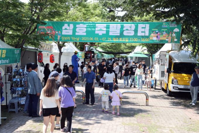 À̳¯ ½ÃÀÛµÈ »ïÈ£ÁÖ¸»ÀåÅÍ´Â 7¿ù 29ÀϱîÁö °è¼ÓµÈ´Ù. ÀÌ ±â°£ ¸ÅÁÖ Åä¿äÀÏ ¿ÀÀü 11½ÃºÎÅÍ ¿ÀÈÄ 6½Ã±îÁö ÀåÅͰ¡ ¿¸°´Ù. ¹®È¿¹¼ú°ø¿¬Àº °³Àå ù³¯°ú ¸¶Âù°¡Áö·Î ¿ÀÈÄ 2½Ã¿Í 4½Ã µÎ Â÷·Ê À̾îÁø´Ù.