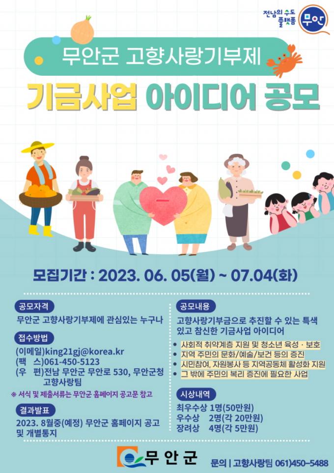 [È£³²´º½º¶óÀÎ = ¼ÀºÈ« ±âÀÚ] ¹«¾È±º(±º¼ö ±è»ê)ÀÌ 6¿ù 5ÀϺÎÅÍ 7¿ù 4ÀϱîÁö Àü ±¹¹ÎÀ» ´ë»óÀ¸·Î °íÇâ»ç¶û±âºÎÁ¦ ±â±Ý»ç¾÷ ¾ÆÀ̵ð¾î °ø¸ðÀüÀ» ÁøÇàÇÑ´Ù.