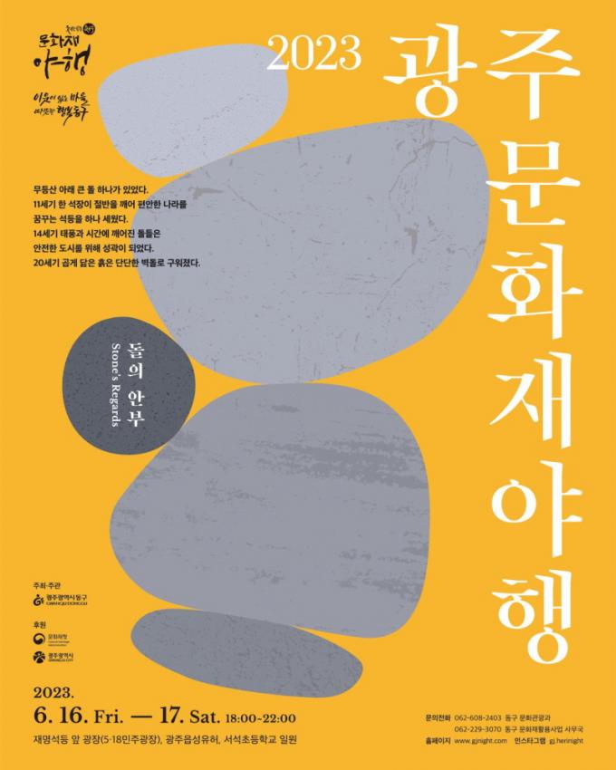 ±âŸ ÀÚ¼¼ÇÑ »çÇ×Àº ±¤ÁÖ¹®ÈÀç¾ßÇà ´©¸®Áý(www.gjnight.com) ¶Ç´Â ¹®È°ü±¤°ú ¹®È¿¹¼ú°è(¢Ï062-608-2403)¿Í µ¿±¸ ¹®ÈÀç Ȱ¿ë»ç¾÷ »ç¹«±¹(¢Ï062-229-3070)À¸·Î ¹®ÀÇ.