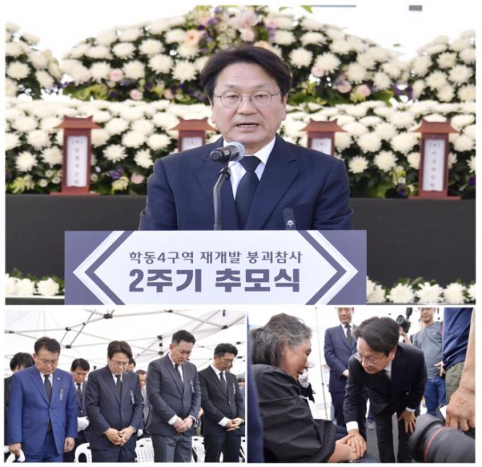 À̳¯ ±¤ÁÖ½Ã¿Í µ¿±¸´Â Âü»ç ½Ã°¢ÀÎ ¿ÀÈÄ 4½Ã22ºÐ Çе¿4±¸¿ª Àç°³¹ß ºØ±«Âü»ç ÇöÀå¿¡¼ Èñ»ýÀÚÀÇ ³ÌÀ» À§·ÎÇÏ°í ¾ÈÀüÀǽÄÀ» ´ÙÁö´Â 2ÁÖ±â Ã߸ð½ÄÀ» ÁøÇàÇß´Ù.