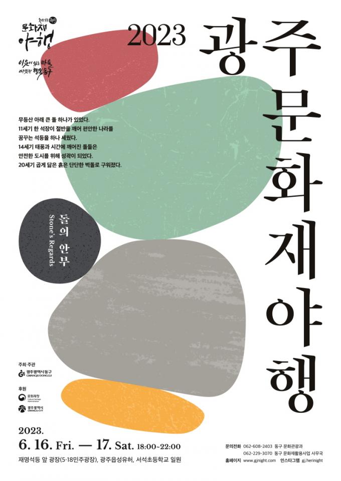 7³â ¿¬¼Ó ¹®ÈÀçû °ø¸ð»ç¾÷¿¡ ¼±Á¤µÅ ÃßÁøÇÏ´Â ¡®±¤ÁÖ¹®ÈÀç¾ßÇ࡯Àº µ¿±¸ÀÇ ÁÖ¿ä ¿ª»ç¡¤¹®È ÀÚ¿øÀ» Ȱ¿ëÇÑ ¾ß°£¹®È ÇâÀ¯ ÃàÁ¦·Î, ¿ÃÇØ´Â ¡®µ¹ÀÇ ¾ÈºÎ¡¯¶ó´Â ÁÖÁ¦·Î ±¤ÁÖ ½Ã¹ÎÀ» ã¾Æ°£´Ù.