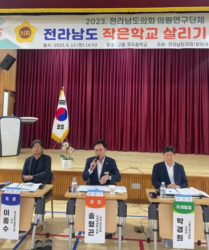 [È£³²´º½º¶óÀÎ = ¼ÀºÈ« ±âÀÚ] Àü¶ó³²µµÀÇȸ ¼ÛÇü°ï ÀÇ¿ø(´õºÒ¾î¹ÎÁÖ´ç, °íÈï1)Àº 13ÀÏ °íÈï Æ÷µÎÁßÇб³¿¡¼ ¡®Àü¶ó³²µµ ÀÛÀºÇб³ »ì¸®±â Åä·Ðȸ¡¯¸¦ °³ÃÖÇß´Ù.