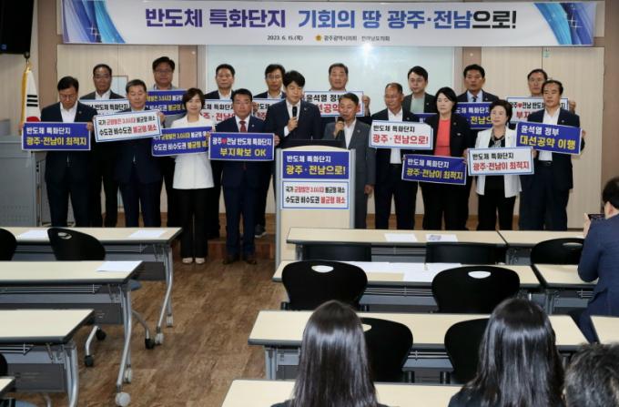 Àü³²µµÀÇȸ¿Í ±¤ÁÖ±¤¿ª½ÃÀÇȸ´Â ¼º¸í¼¸¦ ÅëÇØ dzºÎÇÑ Àç»ý¿¡³ÊÁö¸¦ Ȱ¿ëÇÑ RE100 ½ÇÇöÀÌ °¡´ÉÇÑ Á¡, ´ë»ó ºÎÁö¸¦ È®º¸ÇÑ Á¡, Çѱ¹¿¡³ÊÁö°ø´ë¡¤±¤ÁÖ°úÇбâ¼ú¿ø µî ¹ÝµµÃ¼ »ê¾÷ ¹ßÀüÀ» À̲ø¾î °¥ ¼ö ÀÖ´Â ÀÎÇÁ¶ó°¡ °®ÃçÁø Á¡ µî ±¤ÁÖ¡¤Àü³²ÀÌ °¡Áø ÀåÁ¡°ú ÇÔ²², ±¤ÁÖ¡¤Àü³² ¹ÝµµÃ¼ ƯȴÜÁö ÁöÁ¤Àº ¡®Áö¹æ¼Ò¸ê¡¯ÀÇ À§±â¸¦ ±Øº¹ÇÏ°í ±¹°¡ ±ÕÇü¹ßÀüÀ» ÀÌ·èÇÑ ÇÙ½É ¸ðµ¨À» ¸¸µé ¼ö ÀÖ´Â ±âȸÀÓÀ» °Á¶ÇÏ¸ç ¡®±¤ÁÖ¡¤Àü³² ¹ÝµµÃ¼ ƯȴÜÁö ÁöÁ¤¡¯À» °·ÂÈ÷ Ã˱¸Çß´Ù.