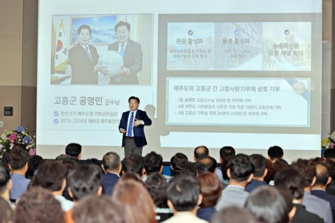 °ø¿µ¹Î ±º¼ö´Â ¡°¹Ù»Û ÀÏÁ¤¿¡µµ ºÒ±¸Çϰí, °íÈïÀ» ¹æ¹®ÇØ ¶æ±íÀº Ư°À» ÇØÁֽŠ¿À¿µÈÆ Áö»ç´Ô²² °¨»çÀÇ ¸»¾¸À» ÀüÇÑ´Ù¡±¸é¼, ¡°°íÈï ³ìµ¿Ç×À» ÅëÇØ °¡Àå ºü¸£°í, Àú·ÅÇÏ°Ô Á¦ÁÖµµ¿¡ ¹°·ù¸¦ °ø±ÞÇÔÀ¸·Î½á ¾ç Áö¿ªÀÇ °æÁ¦¸¦ Ȱ¼ºÈÇϴµ¥ Çù·ÂÇØ ³ª°¡ÀÚ¡±°í ¸»Çß´Ù.