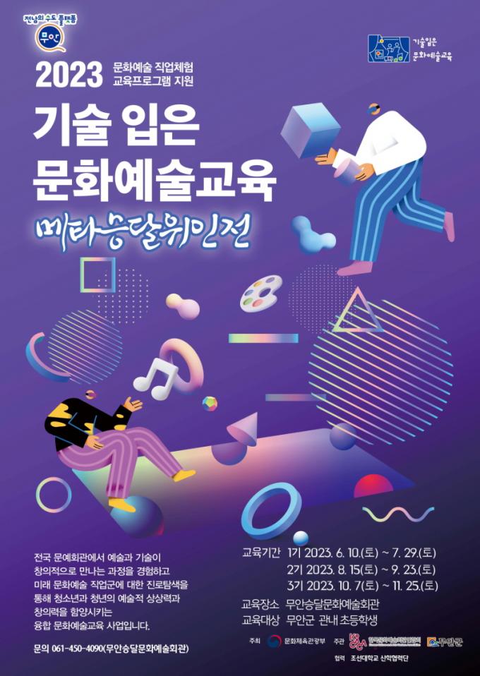[È£³²´º½º¶óÀÎ = ¼ÀºÈ« ±âÀÚ] ¹«¾È±º(±º¼ö ±è»ê)Àº ¹®ÈüÀ°°ü±¤ºÎ°¡ ÁÖÃÖÇϰí Çѱ¹¹®È¿¹¼úȸ°ü¿¬ÇÕȸ°¡ ÁÖ°üÇÏ´Â ¡®2023³â ±â¼úÀÔÀº ¹®È¿¹¼ú±³À° °ø¸ð»ç¾÷¡¯¿¡ ¡®¸ÞŸ ½Â´ÞÀ§ÀÎÀü¡¯ÇÁ·Î±×·¥ÀÌ ¼±Á¤µÇ¾î ±¹ºñ 7õ¸¸ ¿øÀ» È®º¸Çß´Ù.