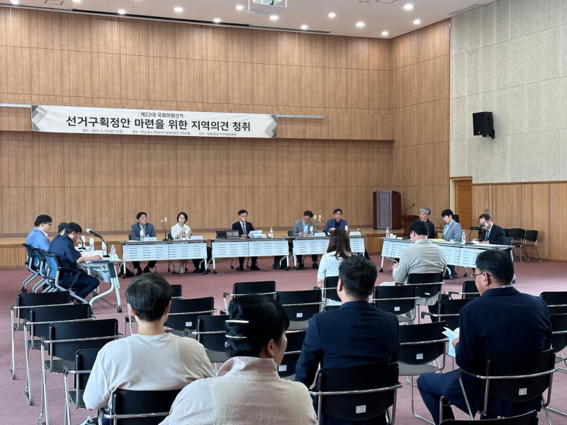 [È£³²´º½º¶óÀÎ = ¼ÀºÈ« ±âÀÚ] Àü¶ó³²µµ Áß¼Ò±â¾÷ÀÏÀÚ¸®°æÁ¦ÁøÈï¿ø¿¡¼´Â Á¦22´ë ±¹È¸ÀÇ¿ø¼±°Å ¼±°Å±¸È¹Á¤(¾È) ¸¶·ÃÀ» À§ÇÑ ÀÇ°ß ¼ö·ÅÀÇ ÀåÀÌ ¸¶·ÃµÆ´Ù. À̳¯ ¼±°Å±¸È¹Á¤À§¿øÈ¸ ÁÖ°ü Åä·Ðȸ¿¡¼´Â ±¹È¸ ÀǼ®À» °¡Áø Á¤´çÀ» ºñ·ÔÇÑ Çаè, ½Ã¹Î´Üü°¡ Âü¼®ÇÏ¿© °¢ÀÚÀÇ ÀÇ°ß Áø¼úÀÌ ÀÖ¾ú´Ù.