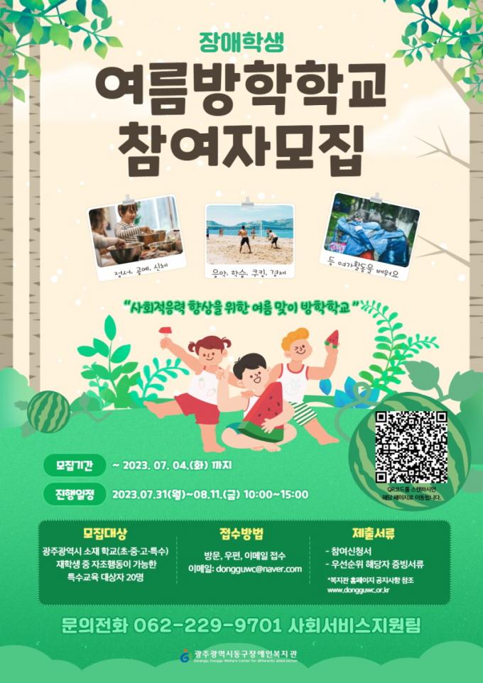 [È£³²´º½º¶óÀÎ = ¼ÀºÈ« ±âÀÚ] ±¤ÁÖ±¤¿ª½Ãµ¿±¸Àå¾ÖÀκ¹Áö°ü(°üÀå Àå¼¼Á¾)¿¡¼ ¿©¸§¹æÇÐÀ» ¸ÂÀÌÇÏ¿© ¹æÇбⰣµ¿¾È »çȸÀûÀÀ·Â Çâ»óÀ» À§ÇØ Àå¾ÖÇлý ¿©¸§¹æÇÐÇб³ Âü¿©ÀÚ¸¦ ¸ðÁýÇÑ´Ù.