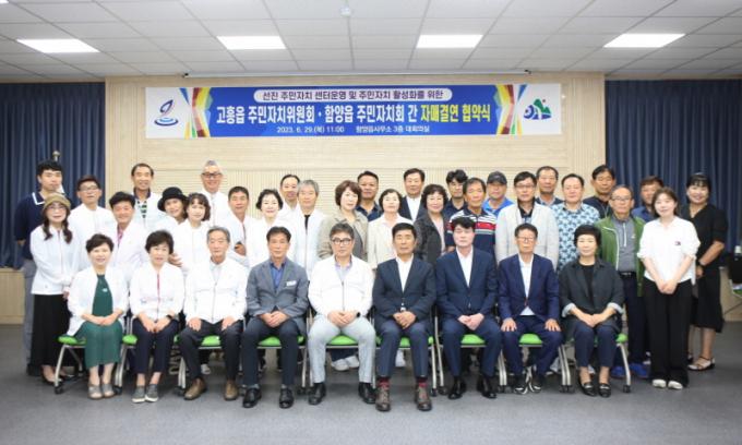 [È£³²´º½º¶óÀÎ = ¼ÀºÈ« ±âÀÚ] °íÈﱺ °íÈïÀ¾ ÁÖ¹ÎÀÚÄ¡À§¿øÈ¸(À§¿øÀå ·ù»óÈ£)´Â 6¿ù 29ÀÏ °æ»ó³²µµ ÇԾ籺 ÇÔ¾çÀ¾À» ¹æ¹®ÇØ ¾ç Áö¿ª ÁÖ¹ÎÀÚġȸ °£ ÀڸŰῬ Çù¾à½ÄÀ» ü°áÇϰí ÇÔ¾çÀ¾ ÁÖ¹ÎÀÚġȸ(ȸÀå ÀÌÇöÀç)¿Í ¿ì¼ö»ç·Ê¸¦ °øÀ¯ÇÏ´Â °£´ãȸ¸¦ °¡Á³´Ù.