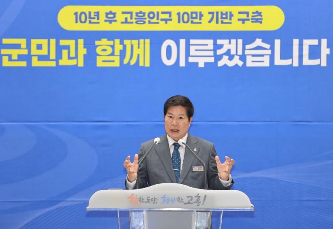 ÀÌ¾î ¾ÕÀ¸·Î 3³â°£ ±ºÁ¤ ¿î¿µ¹æÇâ¿¡ ´ëÇÑ Ã»»çÁøÀ» ¹àÈ÷¸é¼ ¡®10³â ÈÄ °íÈïÀα¸ 10¸¸ÀÇ ±â¹Ý ±¸Ã࡯ ºñÀü ½ÇÇöÀ» º»°ÝÈÇÏ°í °íÈïÀÇ Èñ¸ÁÂù ¹Ì·¡¸¦ °ßÀÎÇÒ ¿ªÁ¡»ç¾÷¿¡ ´ëÇØ ¼³¸íÇß´Ù.