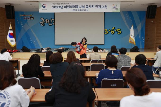 À̳¯ ±³À°¿¡´Â º¸¼º±º ¾î¸°ÀÌ ÀÌ¿ë½Ã¼³ Á¾»çÀÚ 50¿© ¸íÀÌ Âü¼®ÇØ ½ÉÆó¼Ò»ý¼ú, ±âµµ Æó¼â ÀÀ±Þóġ, VR¡¤AR ÀÀ±Þ»óȲ üÇè¿¡ Âü¿©Çß´Ù. ÇØ´ç ±³À°Àº 「¾î¸°ÀÌ ¾ÈÀü°ü¸®¿¡ °üÇÑ ¹ý·ü」¿¡ µû¸¥ ¹ýÁ¤ Àǹ«±³À°À¸·Î Çпø, ¾î¸°ÀÌÁý µî 13¼¼ ¹Ì¸¸ÀÇ ¾î¸°À̰¡ ÁÖ·Î ÀÌ¿ëÇÏ´Â ½Ã¼³ÀÇ Á¾»çÀÚ´Â ÀÀ±Þóġ ½Ç½ÀÀ» Æ÷ÇÔÇÑ ¾î¸°ÀÌ ¾ÈÀü±³À°À» ¸Å³â 4½Ã°£ ÀÌ»ó ¹Þ¾Æ¾ß ÇÑ´Ù.