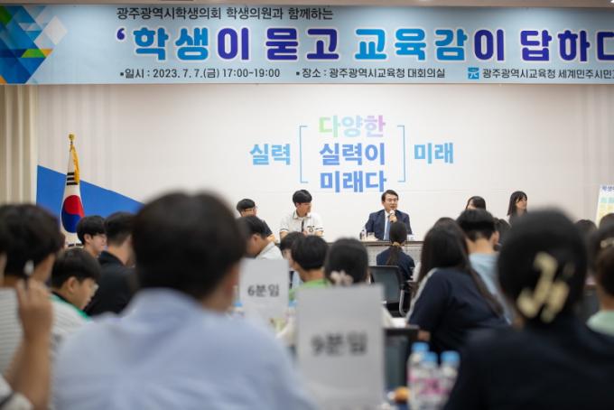 [È£³²´º½º¶óÀÎ = ¼ÀºÈ« ±âÀÚ] ±¤Áֽñ³À°Ã»ÀÌ Áö³ 7ÀÏ ½Ã±³À°Ã» ´ëȸÀǽǿ¡¼ ±¤ÁÖ±¤¿ª½ÃÇлýÀÇȸ ÇлýÀÇ¿ø°ú ÇÔ²²ÇÏ´Â ¡®ÇлýÀÌ ¹¯°í ±³À°°¨ÀÌ ´äÇÏ´Ù¡¯ Çà»ç¸¦ ½Ç½ÃÇß´Ù.