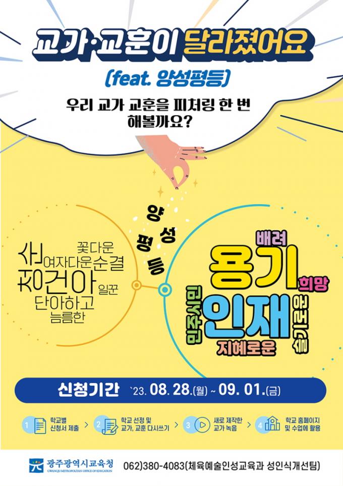 À̹ø °ø¸ð´Â Çб³ÀÇ ±³°¡¡¤±³ÈÆÀ» Çö´ëÀû °¨¼º¿¡ ¸Â°Ô »õ·Ó°Ô ±³Ã¼ÇϰíÀÚ ¸¶·ÃµÆ´Ù. ±³°¡¡¤±³ÈÆÀÌ ¸¸µé¾îÁú ´ç½Ã ½Ã´ë»ó ¹× ÀÎÀç»óÀ» ¹Ý¿µÇØ Áö±Ý°ú ¸ÂÁö ¾Ê´Â °æ¿ì°¡ ÀÖ´Ù°í ÀÚÁÖ ÁöÀûµÅ¿Ô´Ù. ¶Ç ¼ºÂ÷º°Àû ¿ä¼Ò ¹× °íÁ¤°ü³ä¿¡ ´ëÇÑ Ç¥ÇöÀ» ±³À° ±¸¼º¿øÀÇ ÀÚ¹ßÀûÀÎ Âü¿©·Î ¼öÁ¤¡¤º¸¿ÏÇØ ¾ç¼ºÆòµî Ä£ÈÀû Çб³¹®È Á¶¼ºÀÇ Ãâ¹ßÁ¡À¸·Î »ï°íÀÚ ÇÑ´Ù.